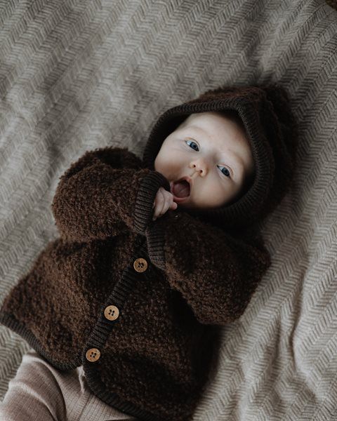 Puidust nööpide ja kapuutsiga